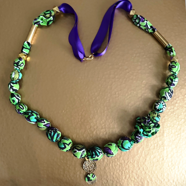 Collier long en tissu imprimé