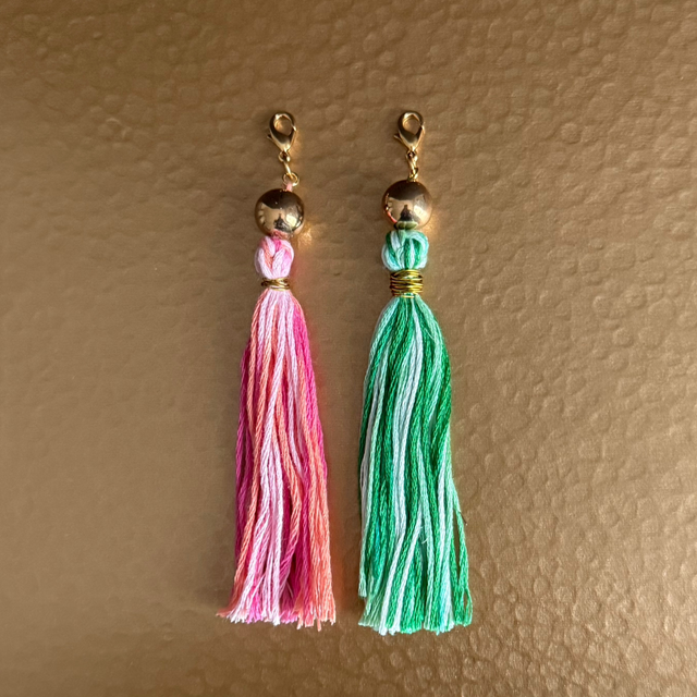 Lot de deux pompons pour agrémenter vos accessoires comme les pochettes textile, bijoux.