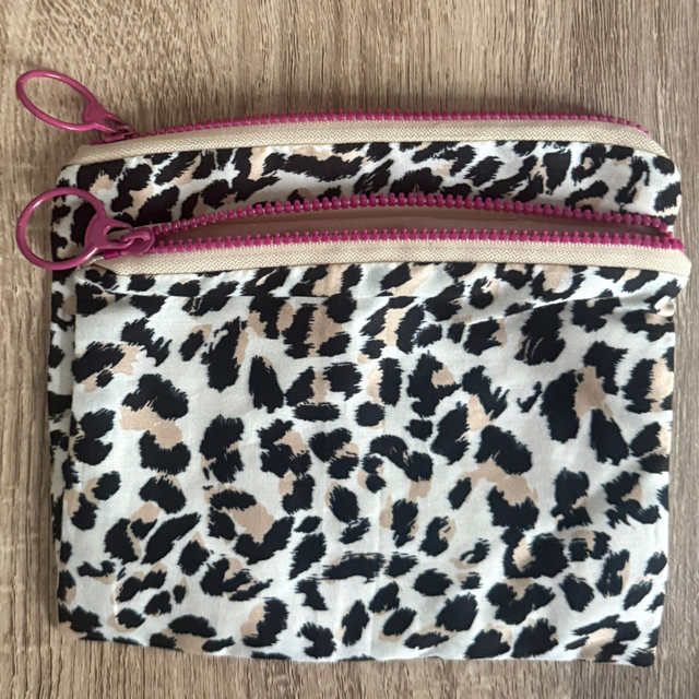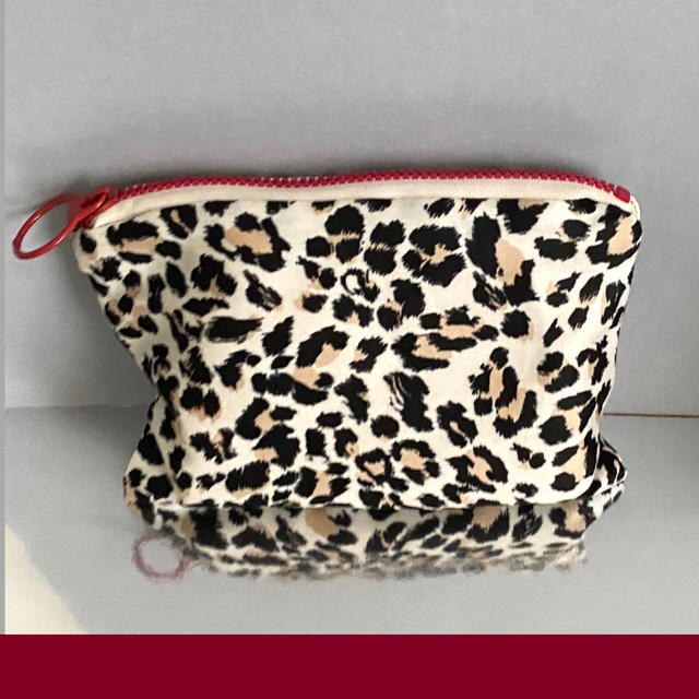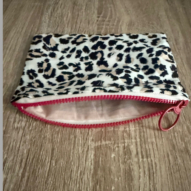 Réaliser dans du tissu à motifs panthère. Doublée d’un textile léger beige en coton.
